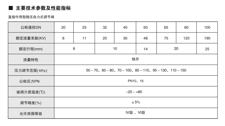 ZZVP自力式压力调节阀技术参数及安装尺寸 :